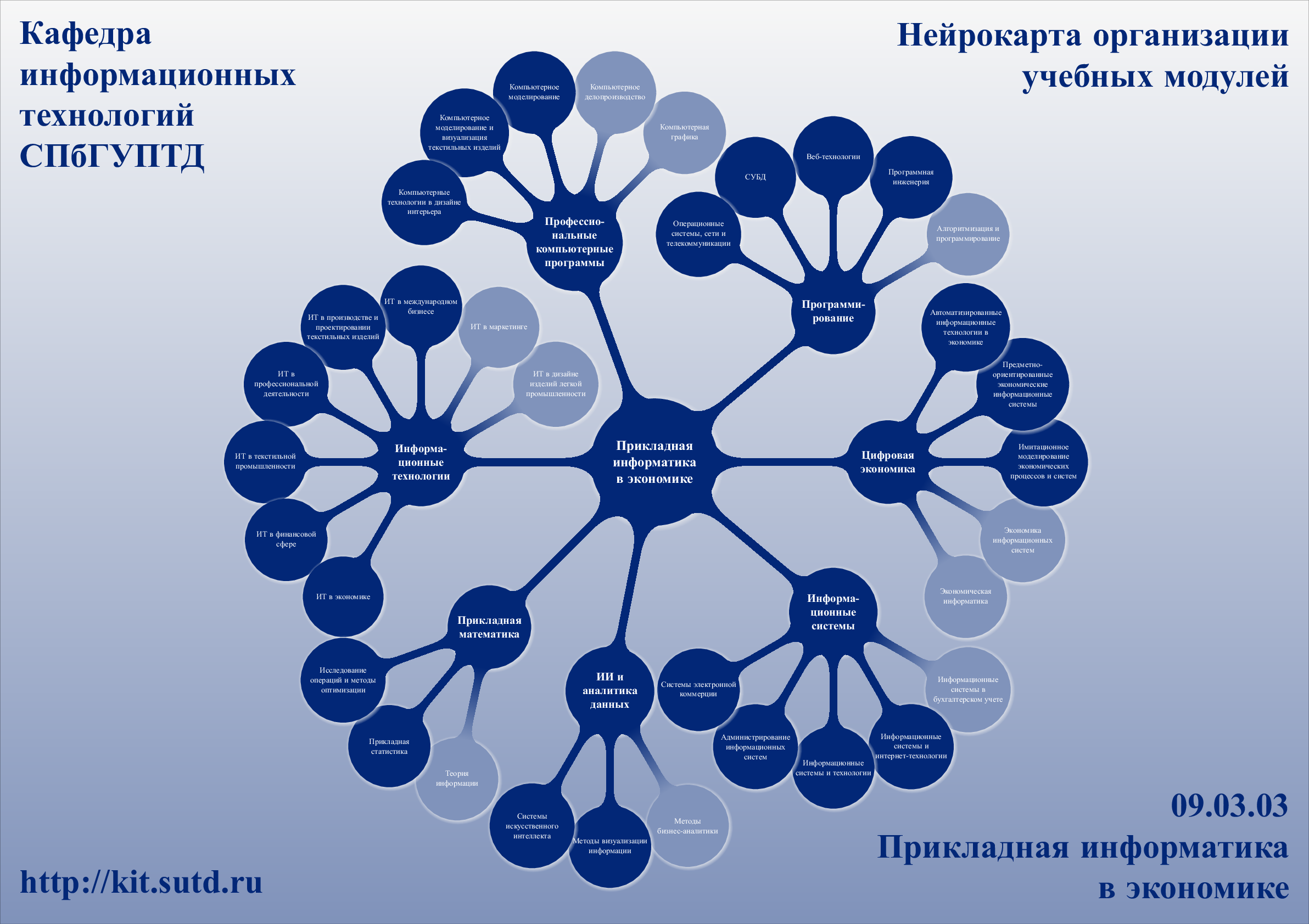 В качестве примера посмотрите нейрокарту предмета Информационные технологии (для всех специальностей), предметный план специальности 09.03.03 Прикладная информатика в экономике и план прохождения практик.