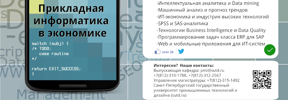 - 09.04.03 Прикладная информатика (магистратура), профиль Прикладная информатика в экономике;